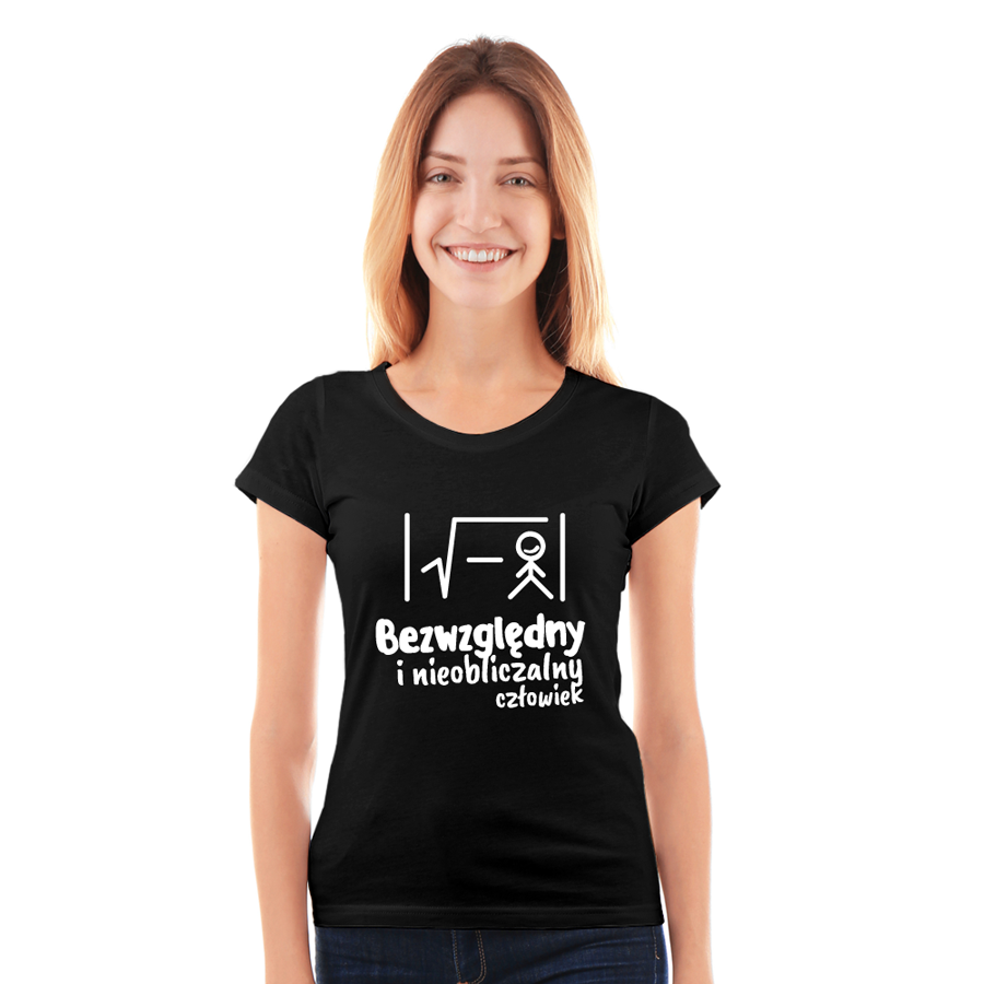 KOSZULKA DAMSKA "Bezwzględny i nieobliczalny człowiek", rozmiar: S (czarna)