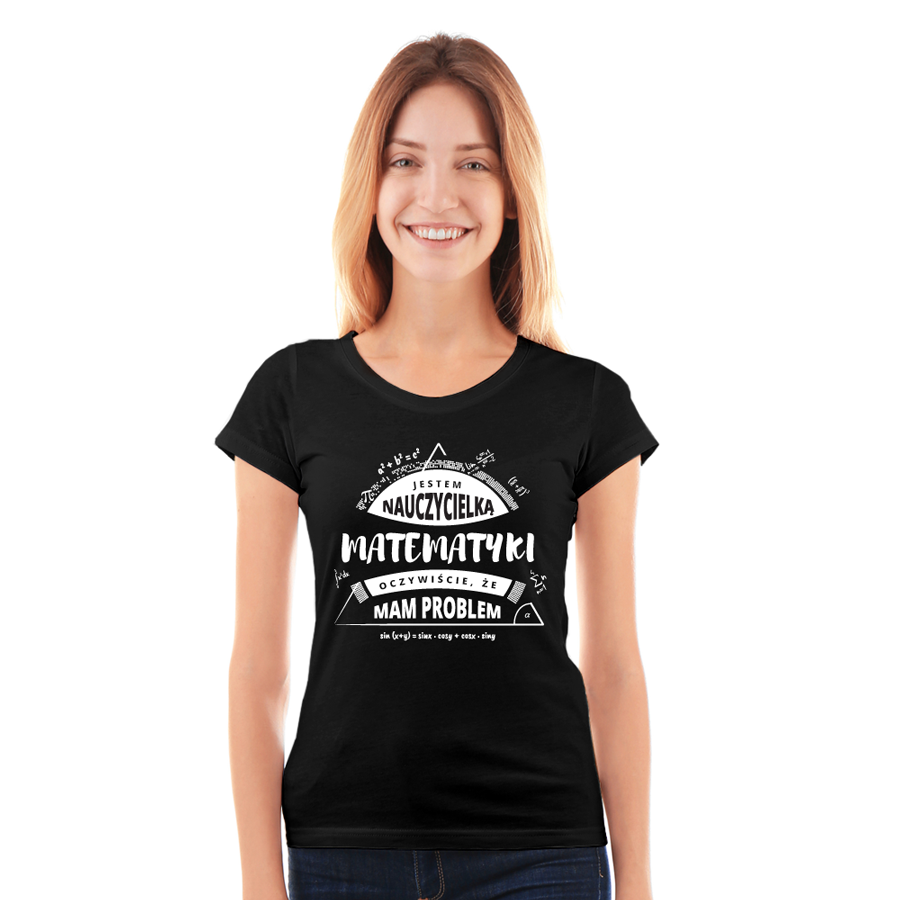 KOSZULKA DAMSKA "Jestem nauczycielką matematyki - oczywiście, że mam problem", rozmiar: M (czarna)