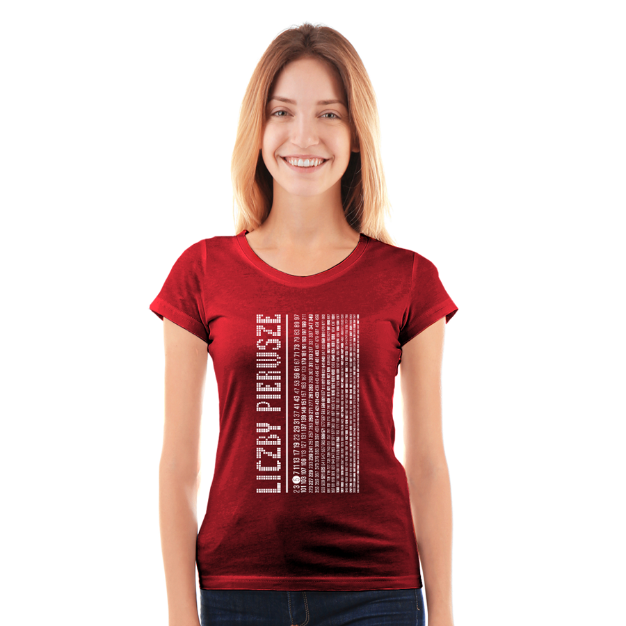 KOSZULKA DAMSKA "Liczby pierwsze", rozmiar: L (czerwona)