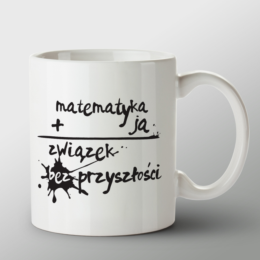 KUBEK porcelanowy z nadrukiem „Matematyka+ja-związek (bez) przyszłości"