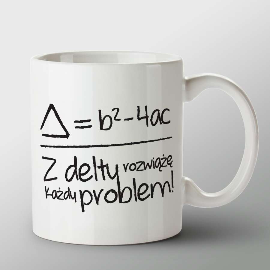 (opcje i koszty dostawy)OpisOpis produktuKUBEK porcelanowy z nadrukiem „Z delty rozwiążę każdy problem"