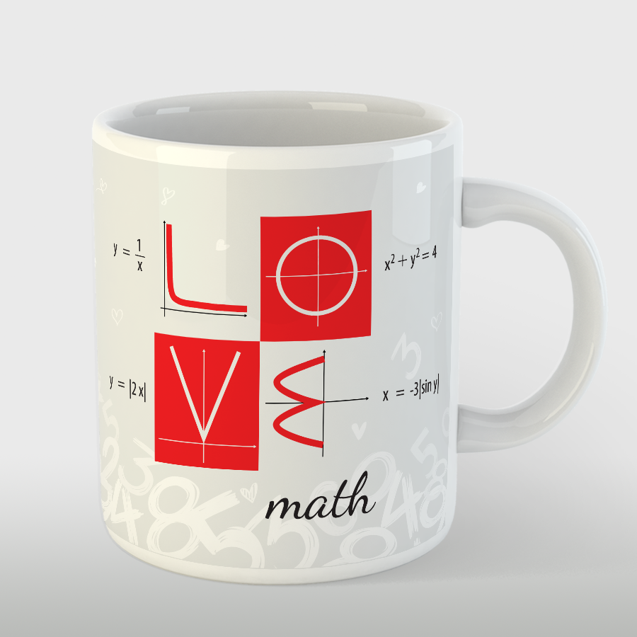 KUBEK porcelanowy z nadrukiem „I LOVE MATH 2" (z funkcjami szachownica)
