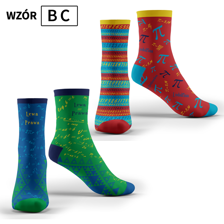Pakiet 2 par kolorowych skarpet "Math funny socks" wzory B+C - "Lewa=Prawa", "Liczba Pi"