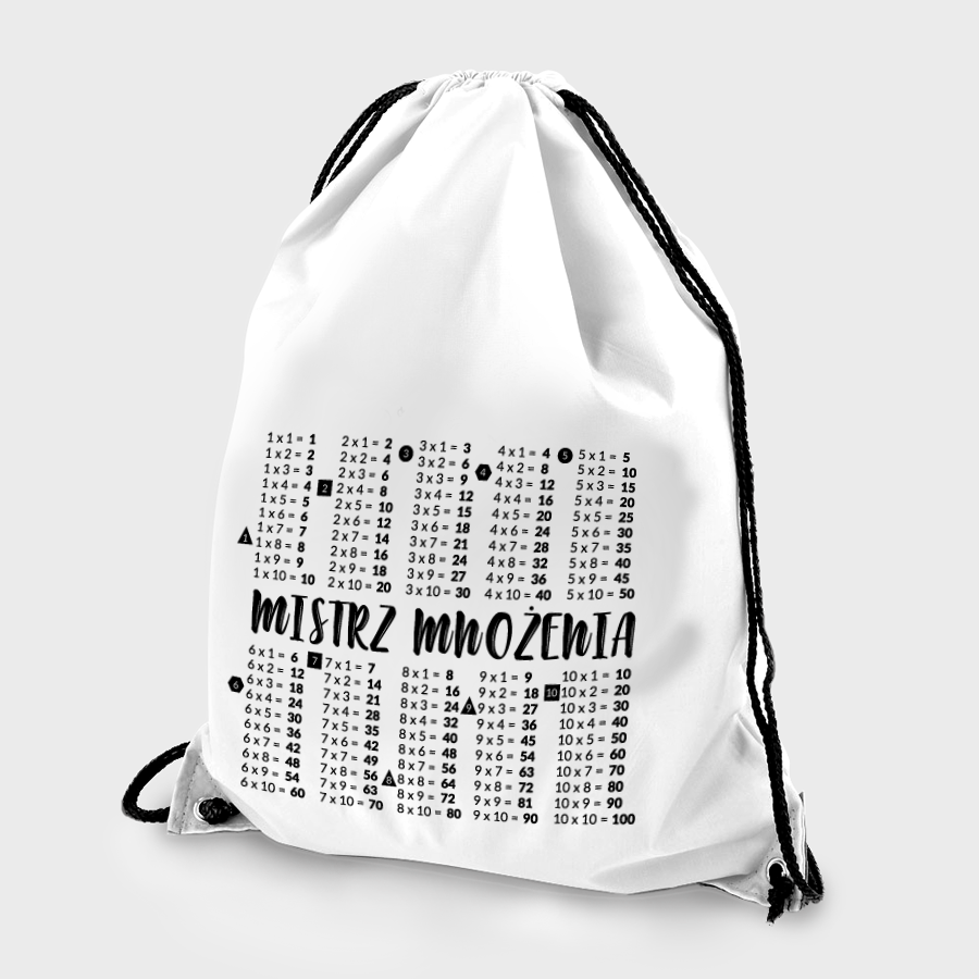 (opcje i koszty dostawy)OpisOpis produktuPlecak z nadrukiem "Mistrz mnożenia" - wersja standard (biały)