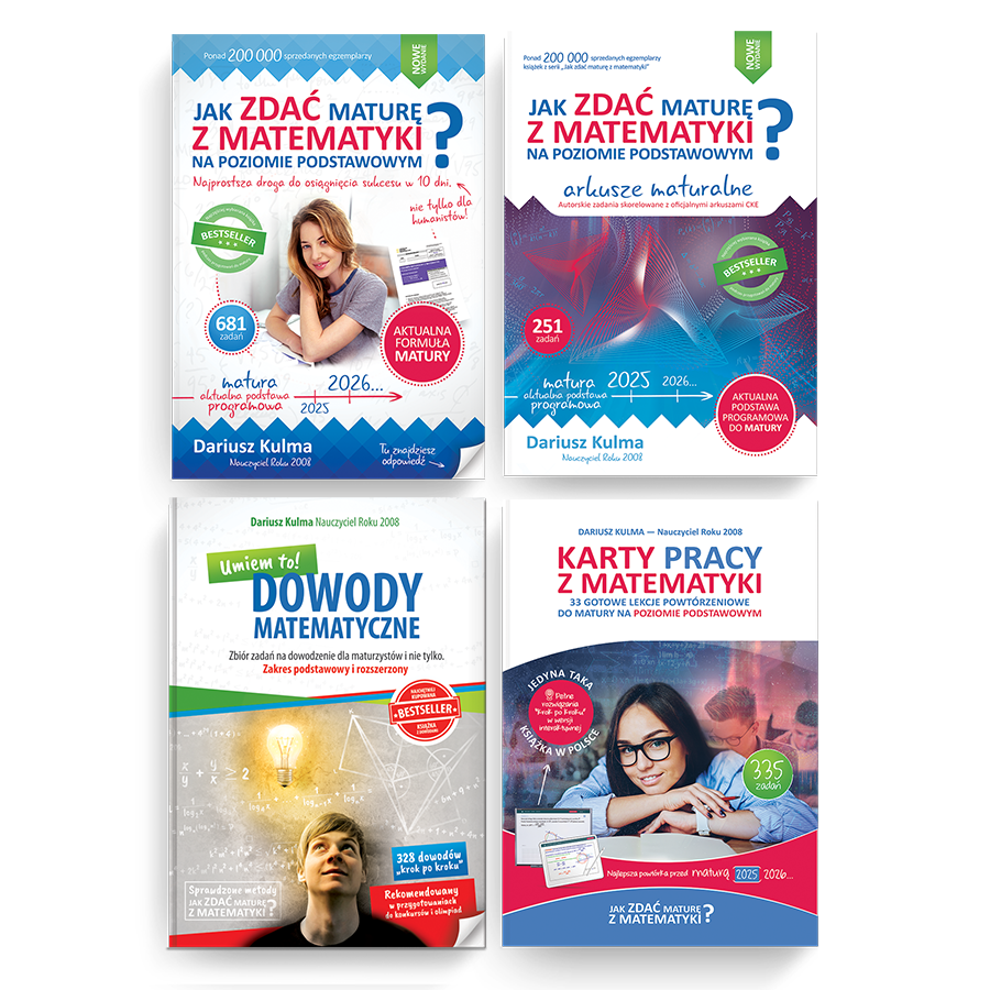 MATURA - poziom PODSTAWOWYKomplet 4 książek: repetytorium + arkusze maturalne + karty pracy + zbiór zadań z dowodami