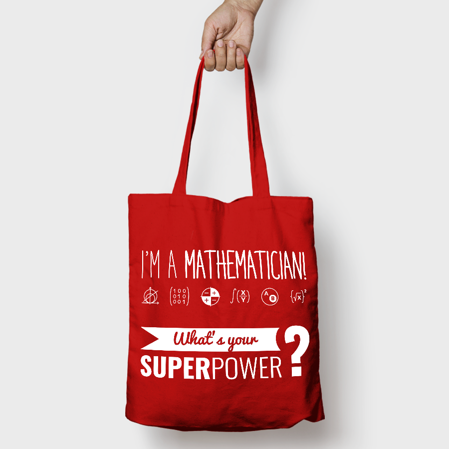 (opcje i koszty dostawy)OpisOpis produktuTorba bawełniana z nadrukiem "I'M A MATHEMATICIAN What is your SUPER POWER?" (czerwona)