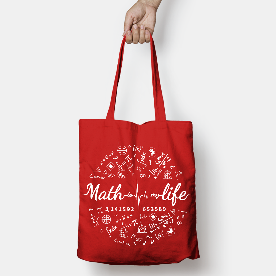 Torba bawełniana z nadrukiem "Math is my life" (czerwona)