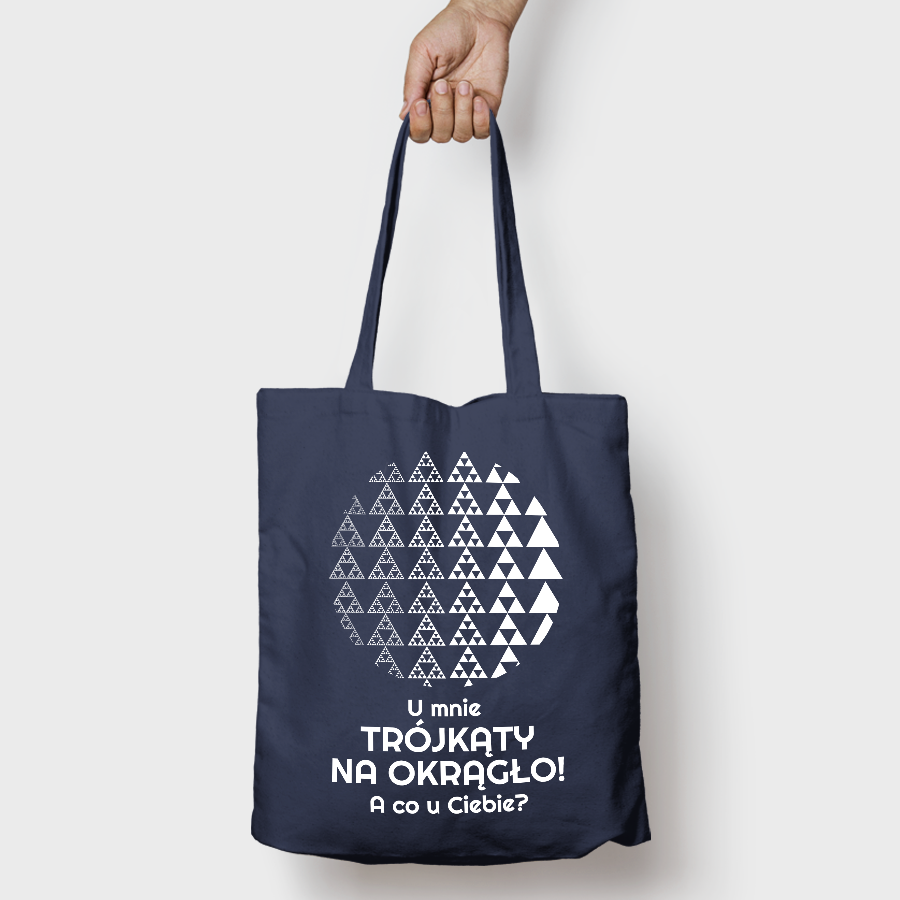(opcje i koszty dostawy)OpisOpis produktuTorba bawełniana z nadrukiem "Trójkąty Sierpińskiego - na okrągło" (ciemnogranatowa)