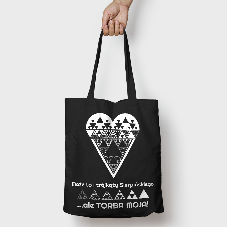 (opcje i koszty dostawy)OpisOpis produktuTorba bawełniana z nadrukiem "Trójkąty Sierpińskiego - serce" (czarna)